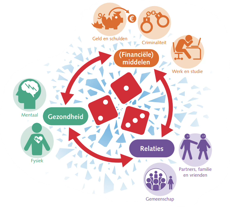 Gokken kan negatieve gevolgen hebben op verschillende gebieden. Denk aan gezondheid, (financiële) middelen en relaties. Als er door gokken problemen ontstaan noemen we dat gokschade.